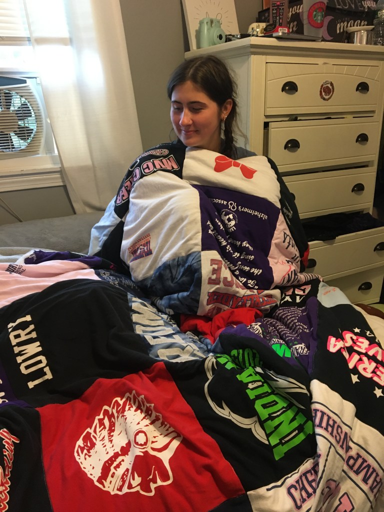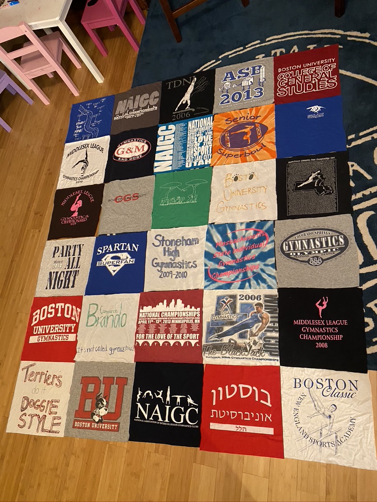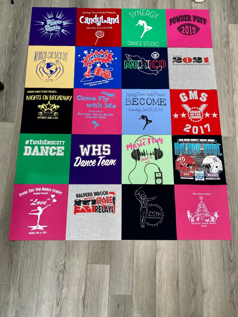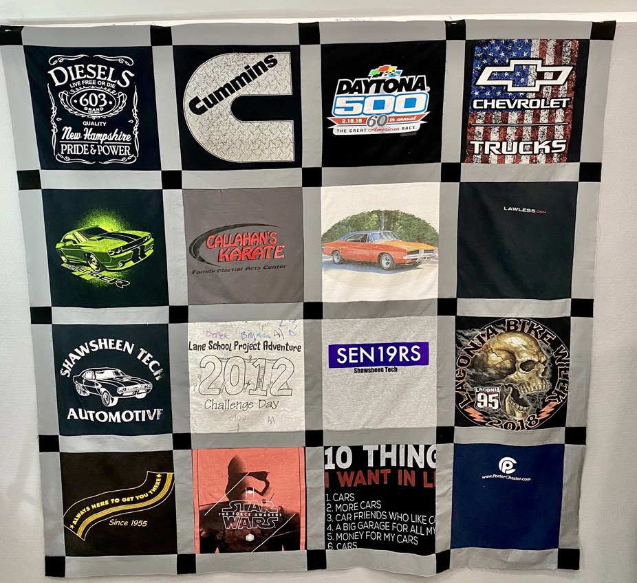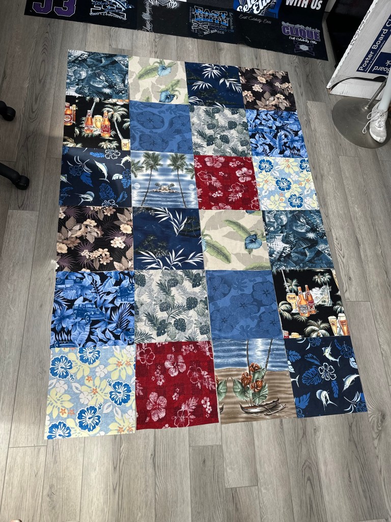 Every blanket comes with a custom designed layout sent directly to you . Any changes can be made at this point to the layout and designEvery quilt comes with a design layout sent to you before the blanket is constructed Every blanket has a custom layout included in the price any changes to the layout can be made at this point A whopping 56 panels!! Memory blanket with 4 custom embroidered panels, & multiple custom squares including a 70 year old wedding dress
